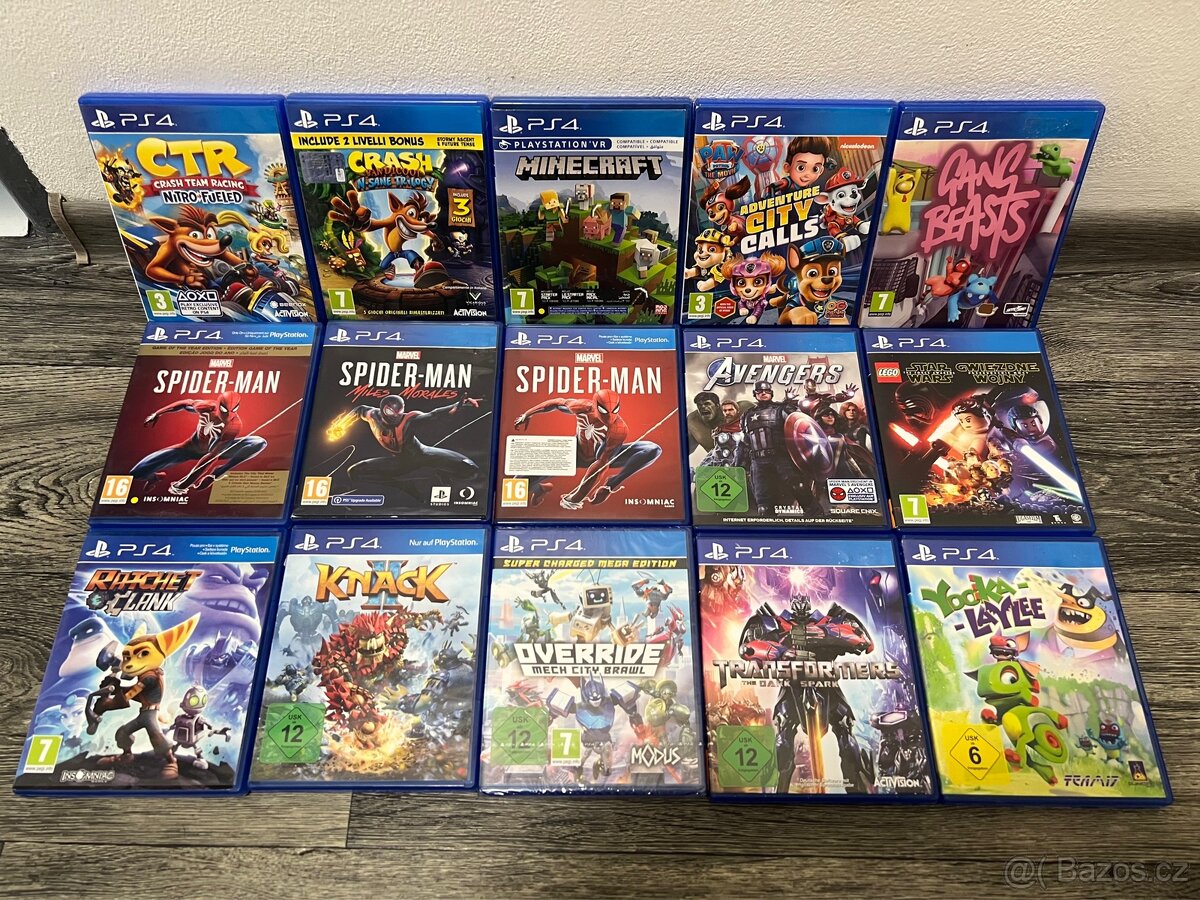 CTR CRASH - 590 CRASH - 590 MINECRAFT - 590 PAW PATROL - 590 GANS BEASTS SPIDERMAN - 550 SPIDERMAN MORALES - 590 SPIDERMAN - 590 MARVER AVENGERS - 450 LEGO STAR WARS - 400 RATCHET AND CLANK - 390 KNACK 2 - 400 OVERRIDE NOVÁ ZABALENÁ - 490 TRANSFORMERS - 400 YOOKA LAYLEE - 400