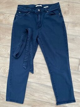 3/4 kalhoty Camaieu s páskem. Tmavě modrá barva, příjemný materiál. Nenošené, jen vyprané, bez vad. Rozměry viz foto, cedulka odstřižena, cca 38.
