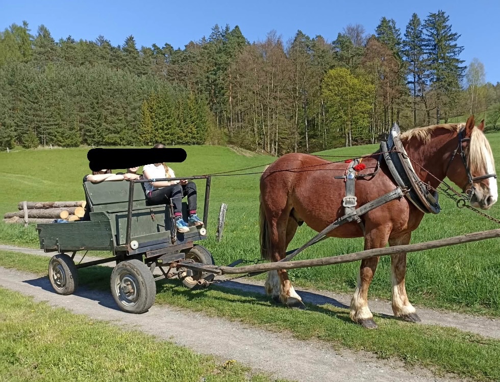 Prodám vozík za jednoho nebo dva koně Plně funkční, je lehký a má ruční brzdu Zadní pneumatiky nové