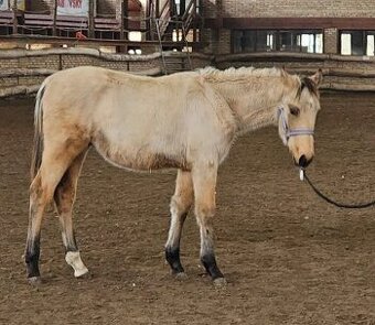 Po dlhom uvažovaní som sa rozhodla predať *4/2025 žrebčeka, polovičný QH. Dino je krásnej buckskin farby s výbornou flegmatickou povahou a miluje spoločnosť ľudí. Bude vhodný na aktívnu rekreáciu, alebo pokojne extreme trail, nižšie levely drezúrnych disciplín (western aj anglia), working equitation a je aj celkom šikovný skokan. Aktuálne je v boxe, ale zvykol byť 24/7 vonku s rovesníkmi alebo v stáde. Ovláda všetko čo by mal v jeho veku vedieť a aj mnoho iného. Vodenie, úväz, čistenie, zdvíhanie nôh, pozná ľahšie extreme trail prekážky, pekne nastupuje do prepravníku aj sa vie pekne voziť. Zastaví keď človek zastaví, vykročí keď človek vykročí, rešpektuje osobný priestor. Nehryzie, nekope, je na jeho vek veľmi rozumný a vyspelý. Predpokladám výšku cca 165cm a mohutnú postavu, má pevné široké nohy. Viac info rada posuniem vážnemu záujemcovi. Veľmi mi záleží na tom kam sa dostane a s novým majiteľom by som chcela zostať v kontakte. Prosím prvý kontakt prostredníctvom sms/whats
