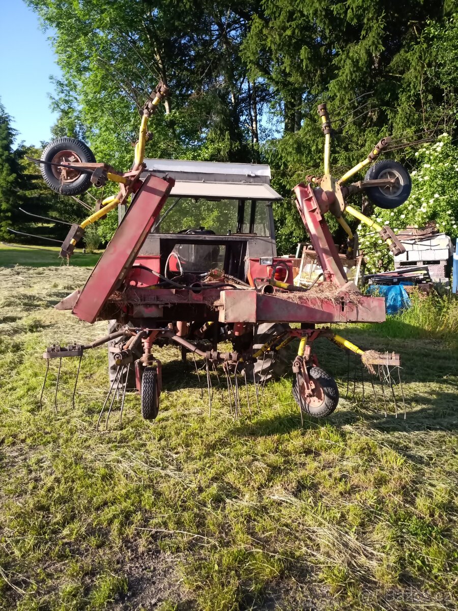 Prodám funkci obraceč sena oz4.pridam náhradní převodovku a rameno.poslednich 15 let dělal 9ha ročně.Duvod prodeje obnova za novější.prodej bez kardanů.