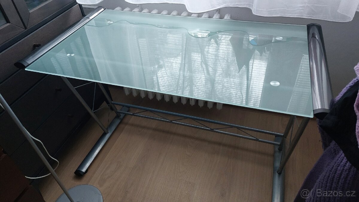 Prodám skleněný pracovní stůl 114 x 60 cm, výška stolu 75 cm.