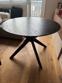 Jídelní stůl černý, 105cm průměr, se známky používání - škrabance na povrchu.