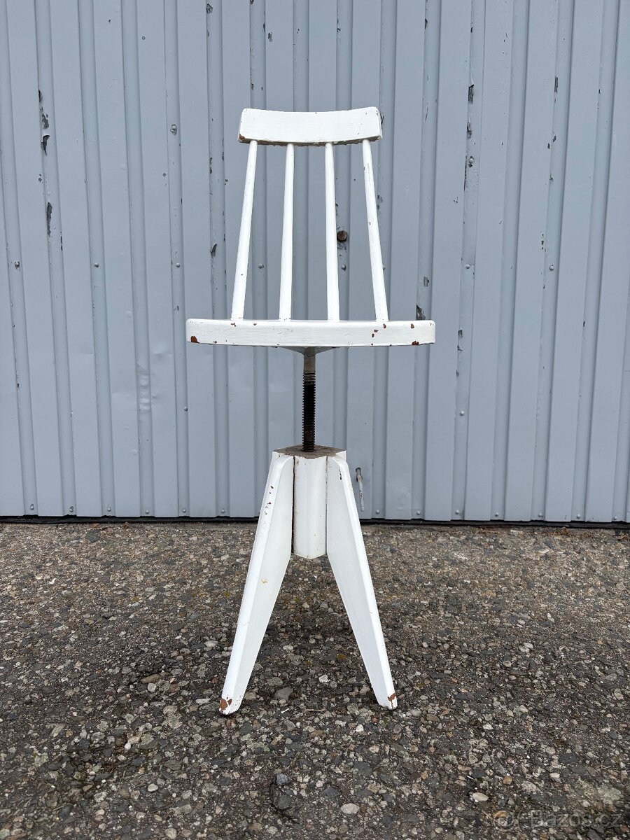 Výškově stavitelná otočná židle, nejspíš Ton Vhodná do menších prostor nebo ke klavíru Natřená bílou barvou Cena 900 Kč K vidění a odběru v Olomouci Zaslání po dohodě Česká pošta Retro Thonet art deco Expo Brusel jitona Tatra Pravenec Československo 1960 Jiroutek Šuman Šmídek