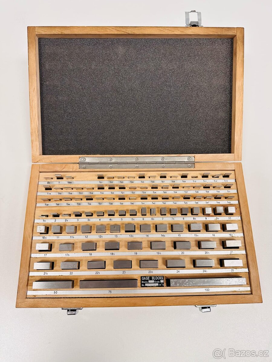 Prodám kontrolní měrky.... Třída přesnosti 1 Počet kusů: 1 Rozměr: 1,005 mm Odstupňování: - Počet kusů: 49 Rozměry: 1,01 až 1,49 mm Odstupňování: 0,01 mm Počet kusů: 49 Rozměry: 0,5 až 24,5 mm Odstupňování: 0,5 mm Počet kusů: 4 Rozměry: 25,0 až 100,0 mm Odstupňování: 25 mm