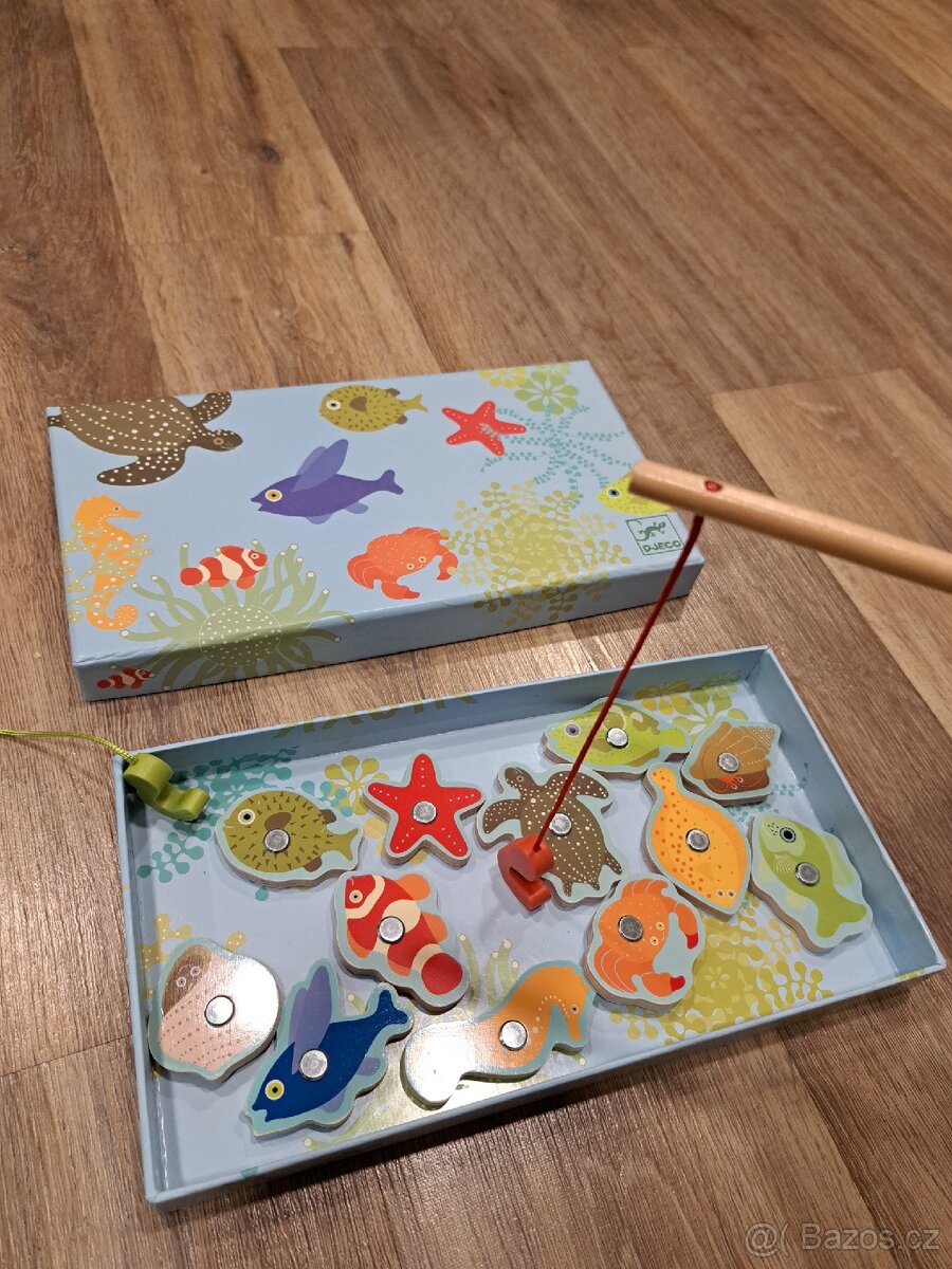 Prodám dětskou magnetickou hračku Rybaření Tropic od výrobce Djeco. V pěkném, nezničeném stavu, jen nepatrné známky používání, z čisté a nekuřácké domácnosti. Dva dřevěné pruty s magnetickými háčky a 12 dřevěných rybiček s magnetem, včetně krabice, tedy zcela kompletní. Původní cena 500. Preferuji osobní předání na Praze 6 nebo 3, případně Zásilkovna.