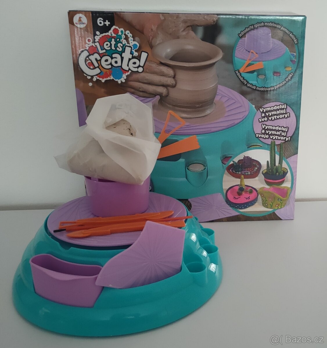 Dětský hrnčířský kruhProdám jednou vyzkoušený dětský hrnčířský kruh na baterky (nejsou součástí balení). Jako nový. Barvičky nerozbalené.