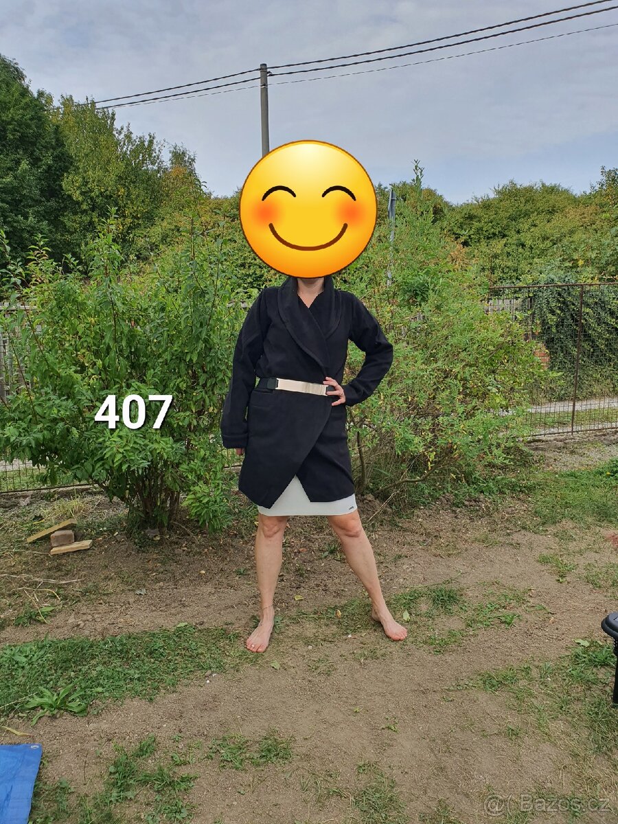 Nový, nenošený černý kabát Figl 407, ve velikosti M. Je to takové větší M. Možná M/L. Zavinovací kabát Figl, po stranách kapsy, včetně výrazného pásku, šálový široký límec. Velmi elegantní.
