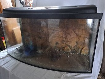 Prodám delší dobu nepoužívané akvárium se stolkem, rozměry: výška 40 cm, s krytem 48 cm, délka 82 cm, přední stěna je oblouková, v nejužším místě měří 27 cm. V ceně jsou drobné pomůcky.