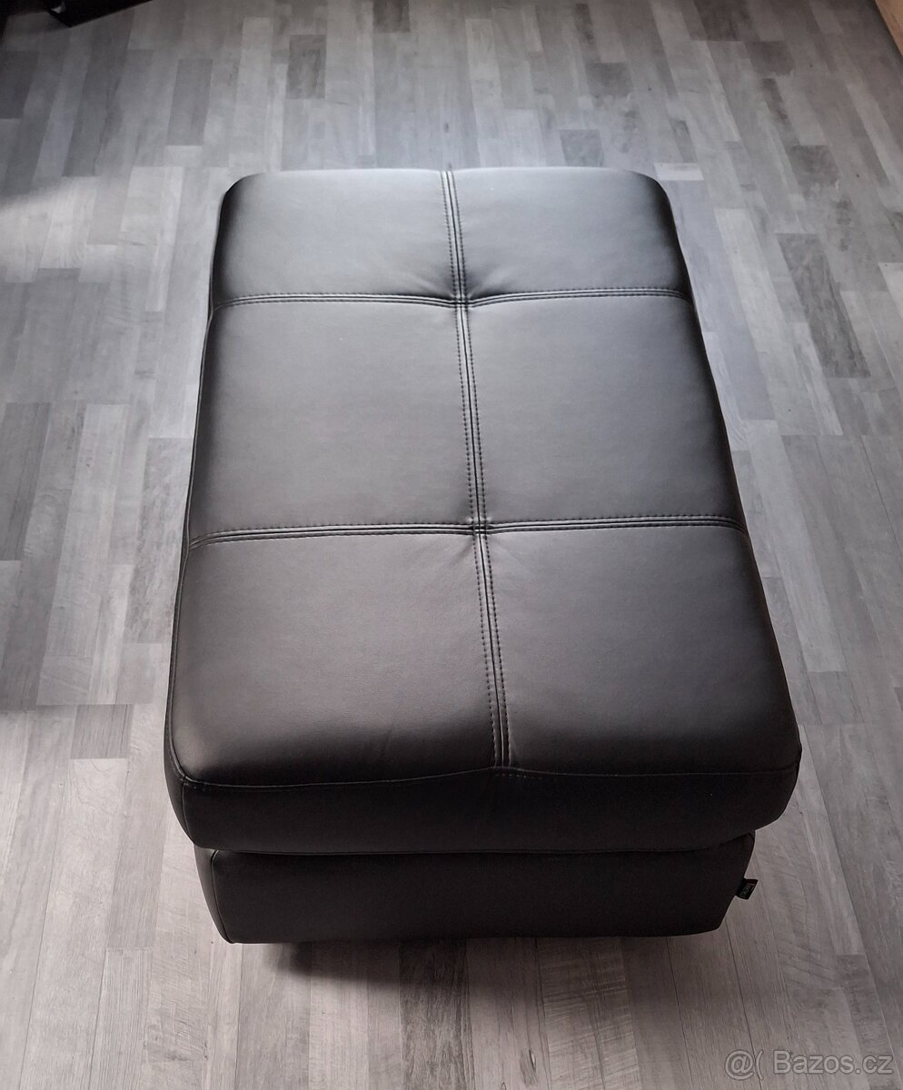 Prodám Taburet jako doplněk z černé eko kůže Madryt,bez úložného prostoru,nezničený. Rozměry viz foto.