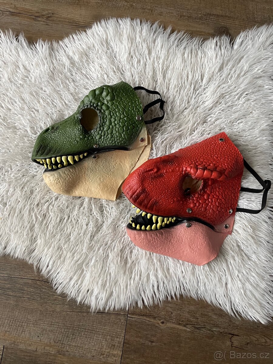 Masky dinosauraProdám nové masky dinosaura, zelená a cihlová, cena za obě, po dohodě možno prodat i po kusech.