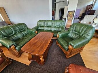 Kožená sedací souprava Romek 3+2+1 bez rozkladu Luxusní kožená sedací souprava potažená pravou hovězí kůží. Sedací souprava se skládá z trojsedu a dvou křesel. Trojsed není rozkládací (v nabídce také varianta s rozkládacím trojsedem). Můžete vybírat z různých barevných provedení kůže i dřeva. Celá kostra sedací soupravy je vyrobena z dubového masivu, který zaručuje její dlouhou životnost. Vyplněna je bonellovými pružinami. *** Rozměry Trojsed: šířka 190 cm x výška 100 cm x hloubka 90 cm 2- sedák: 140x95x93 Křeslo: šířka 90 cm x výška 100 cm/výška sedu 46 cm x hloubka 90 cm/hl.sedu 53 cm Můžeme vidět v obchode Frydek Mistek Revolučni 533 U Koberce Breno Jmeno: Aanabytek Telefon: 704206429 E-mail: woarmebel@gmail.com Cena: 41 900