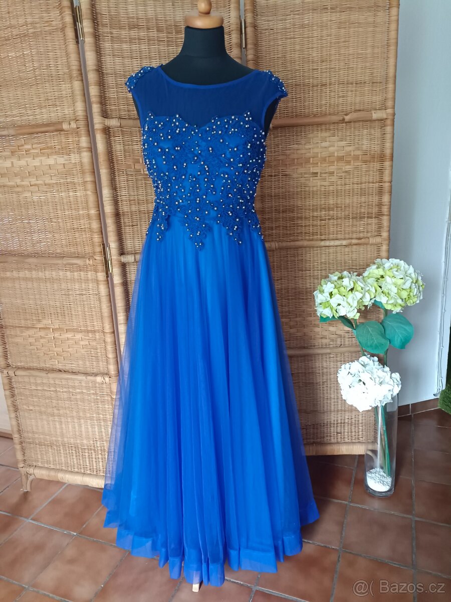 Modré společenské šaty v. 38