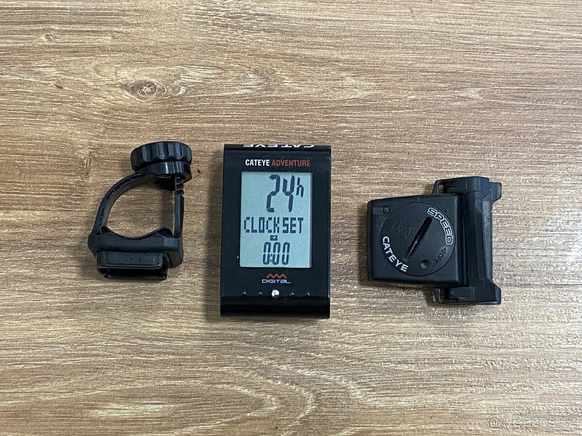 Bezdrátový/beztlačítkový cyklopočítač s měřením nadmořské výšky denní (1 a 2) / celková vzdálenost okamžitá / průměrná / max. rychlost stopky hodiny nadmořská výška denní a celková nastoupaná nadmořská výška sklon teplota odečet vzdálenost celková vzdálenost nadmořská výška