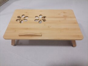 Prodám stolek pod notebook Je to malý stolek do postele, nebo např. na snídaně a podobně... minimální známky opotřebení a je jako nový, má hodně zajímavých prvků, např. šuplík, nebo naklápěcí desku, nejlépe pište na číslo, mohu zaslat přes PPL (+120Kč) Rozměry: 50x30x20