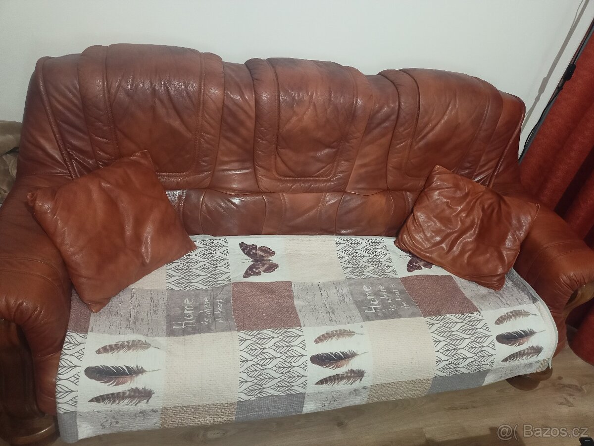 Prodám sedačku a křeslo z pravé kůže sedačka má na pravé opěrce popraskanou kůži viz foto a na sedací ploše je popraskaná dost... Když člověk dá deku tak se ještě použít určitě dá... Křeslo je 7z10 o ceně se dá jednat