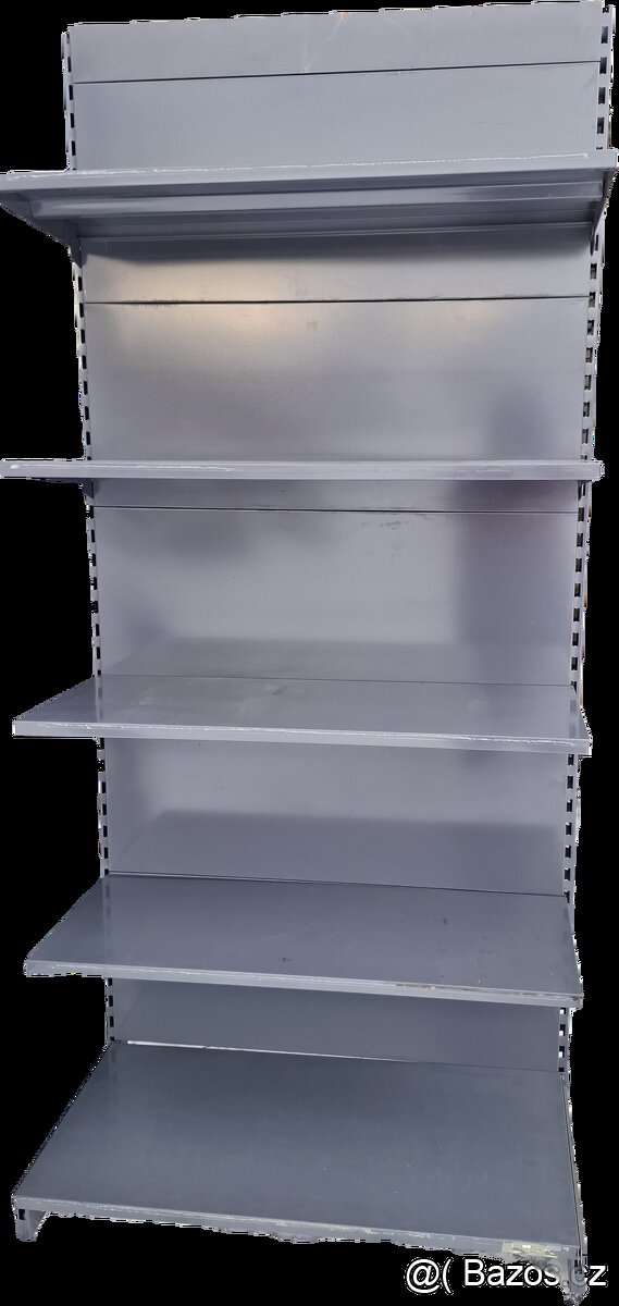 Prodám kovové regály antracit 1x na pečivo 195x1O3x68 cm + oboustranný 165x103x110 hloubka spodní police 50 cm a horní 3 police 40 cm celkem 8m + jednostranný 225x103x58 cm spodni police 5O cm a horní 4 police 40 cm, celkem 11 m. Prodám jako komplet cena 34.000,-Kč