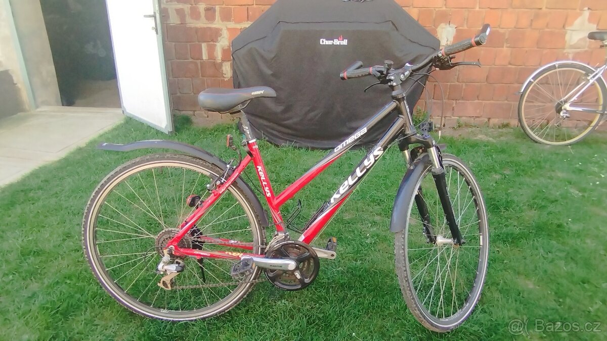 Prodám KELLYS OMEGA rám 19",průměr kol 28" ,řazení shimano 3x8 převodů ,stojánek ,stavitelná odpružená přední vidlice ,vše funkční