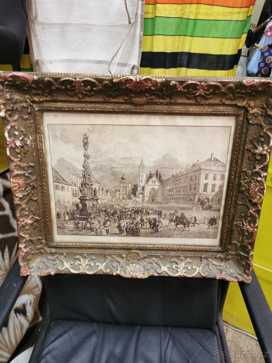 Cena: Nabídněte. Starý tisk, morový sloup v Teplicích. Rozměr 53x44 cm.