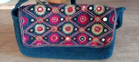 Prodám riflovou kabelku, zdobenou, s ouškem viz. foto rozměry 26x16,5x4,5 cm