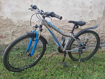 Dobrý den, nabízím k prodeji značkové horské kolo AUTHOR A-MATRIX pro děti a mládež. Vhodné pro chlapce i dívky o výšce cca 125-155cm tedy zhruba mezi 7- 12 let. Kolo je používané, nicméně v celkově dobrém stavu. Technika funguje bez problémů, kola 26", převody 3x7 vzadu přehazovačka Shimano Altus, vpředu přesmykač Tourney. Odpružená přední vidlice RST funguje perfektně. Vzhled viz. foto, nějaké drobnější škrábance hlavně na vidlici a klasicky boky řídítek, natržená přední část sedla. Jinak v pořádku. Kolo má navíc blatníky a stojan. Sedlo se dá výškově seřídit v poměrně značném rozsahu. Kolo je vhodné pro ty, kteří chtějí kvalitní Kolo do nepohody. Lehký ram, účinné brzdy, přesné řazení atd. Rám je samozřejmě hliníkový (ALU). K vidění v Hulíně (Okr. Kroměříž), vyzkoušení v klidné ulici je samozřejmostí.