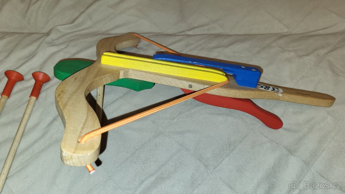 Dětská dřevěná kuše se 3 šípy s přísavkou. Osobní předání Brno.