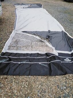 Prodám velmi pěkný, jednou použitý stanový přístřešek Obelink Panorama Grey MT7 s odepínacími boky ke karavanu, včetně nové lehké hliníkové konstrukce, spodního podfuku, tašky a kolíků. Velikost č. 7 a rozměry zem-zem 805-830cm, délka boudy cca 380-410cm. Stav a vzhled viz. foto. První foto je pro představu o co jde a jak to vypadá. Je totožný jen v jiné a to šedo-černé barvě!! Přední stěna lze dokoupit na Obelinku. Původní cena nového 10900kč nyní cena 3990 kč nebo dohodou.