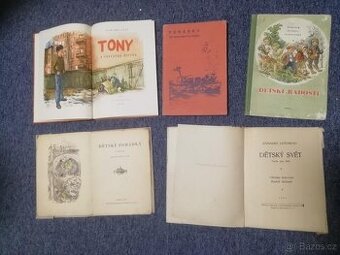 Nabízím pro sběratele mix starých dětských knížek Tony a zázračná dvířka- Howard Fast 1957 Praha - (velmi dobrý stav) Pohádky od Richarda Hugheba 1949 - (velmi dobrý stav) Dětské radosti 1952 Bratislava - (zachovalá . některá stránka trochu ušpiněná) Dětské pohádky s obrázky Mikoláše Alše 1960 Praha - (některé listy uvolněné, pomalovaná obálka) Dětský svět -Emanuel Lešehrad 1925 Praha - (velmi dobrý stav)