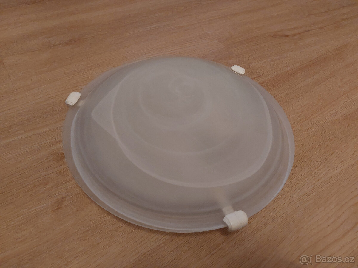 Prodám přísazné stropní svítidlo, kulaté o rozměrech cca.30x8cm. Patice 1x E27, mléčné sklo. Cena 100,-