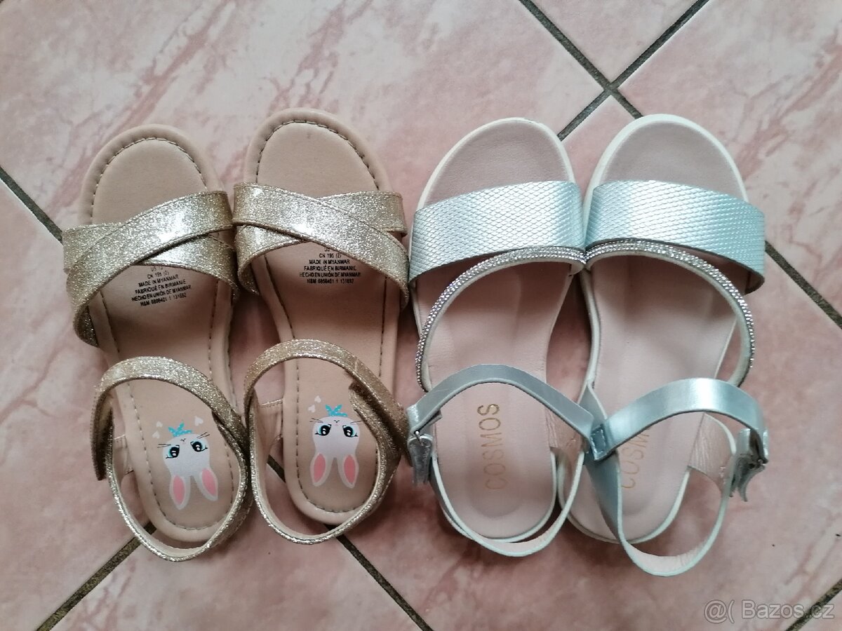 Moc krásné sandálky, zlaté a stříbrné, oboje vel. 31 Úplně bez vad. Zapínání, na suchý zip, drží pevně. Neokopané, nesešlapané, lehoučké, příjemné na nošení. Ráda přeměřím. Cena za pár. Osobní odběr, nebo poštou. Prosím volat, nebo SMS, nemám funkční mail.