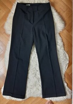 Kvalitní kalhoty nejen do společnosti. Šířka pas 2 x 40 cm, délka 109 cm. Černé s nenápadným šedým proužkem. Pouze 1x na sobě.