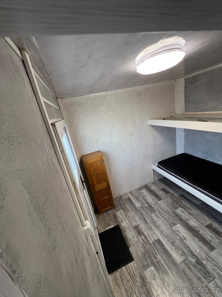 2 vchody Pokoj vlevo 2 postele (nad sebou) Pokoj vpravo jedna postel, držák na TV Uprostred koupelna pruchozi a zamykatelna z obou pokoju V pokojich velke radiatorove zebriky V koupelne je taky zebrik, klasicky zachod s drtickou, rohova sprcha, umyvadlo, 100l el. bojler, priprava na pracku (voda,el.i odpad), skrinka nad umyvadlem se zrcadlem. V koupelne nad zachodem male okynko. Cele na 380v ,rozvod zasuvek, rozfazovane. V kazdem pokoji stropni svetlo Vhodne pro brigadniky na stavbu. Cela skrin ma 100mm izolovanou podlahu tvrzenym polystyrenem.podlaha lino Dopravu i sundani na zem umim zaridit. Pri rychlem jednani a pokud uvidite osobne, cena k jednani. Prives neni v cene