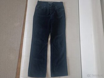Kvalitní tmavě modré kalhoty, zapínání na knoflíky, šířka v pase 37 cm, šířka přes boky 50 cm, výška sedu 29 cm, vnitřní délka nohavic 79 cm, vnější délka nohavic 102 cm, v dobrém stavu. Možné předání u metra Budějovická nebo doručení Zásilkovnou.