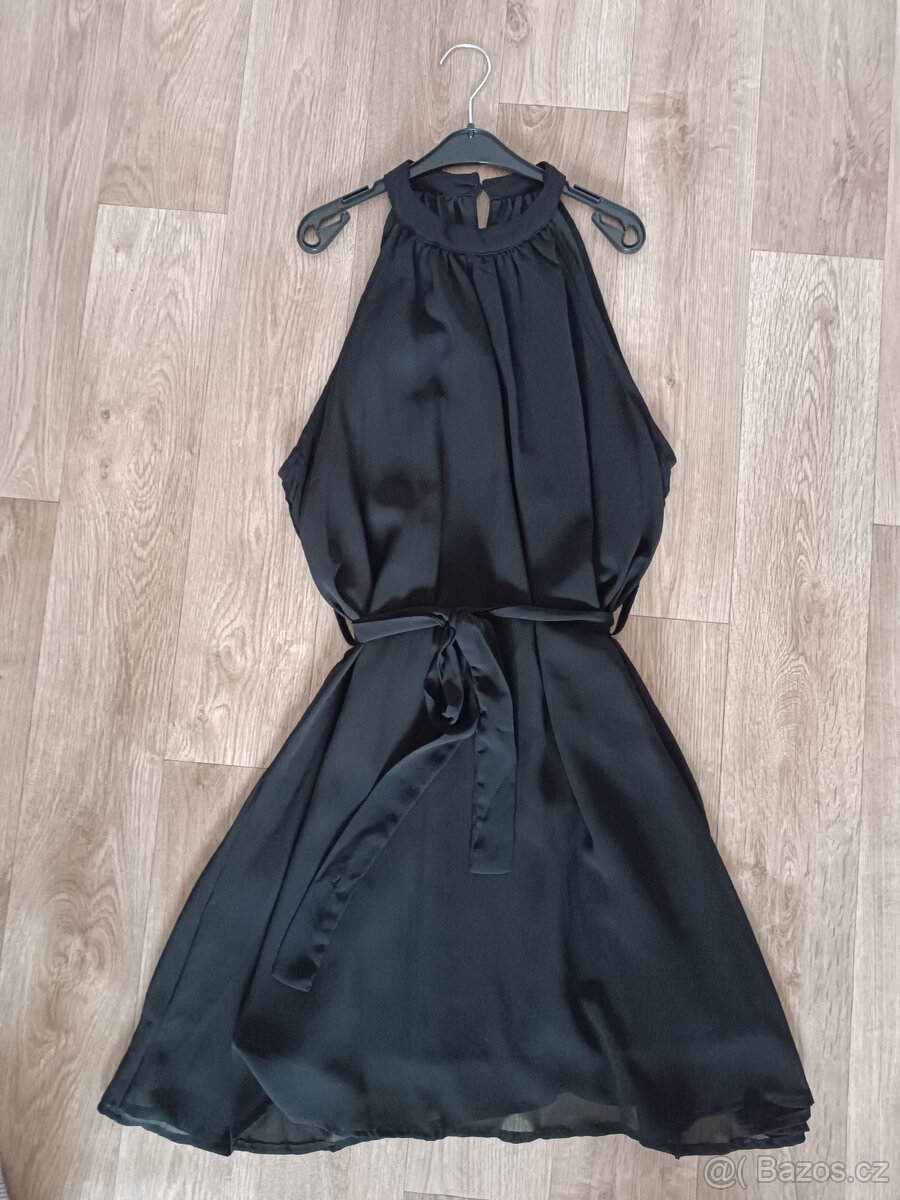 Prodám krátké společenské šaty. Šaty jsou černé barvy s mašlí k zavázání v pase. Velikost XS. Šaty jsou jako nové, pouze jednou nošené. 100% polyester. Cena 150,- + poštovné.