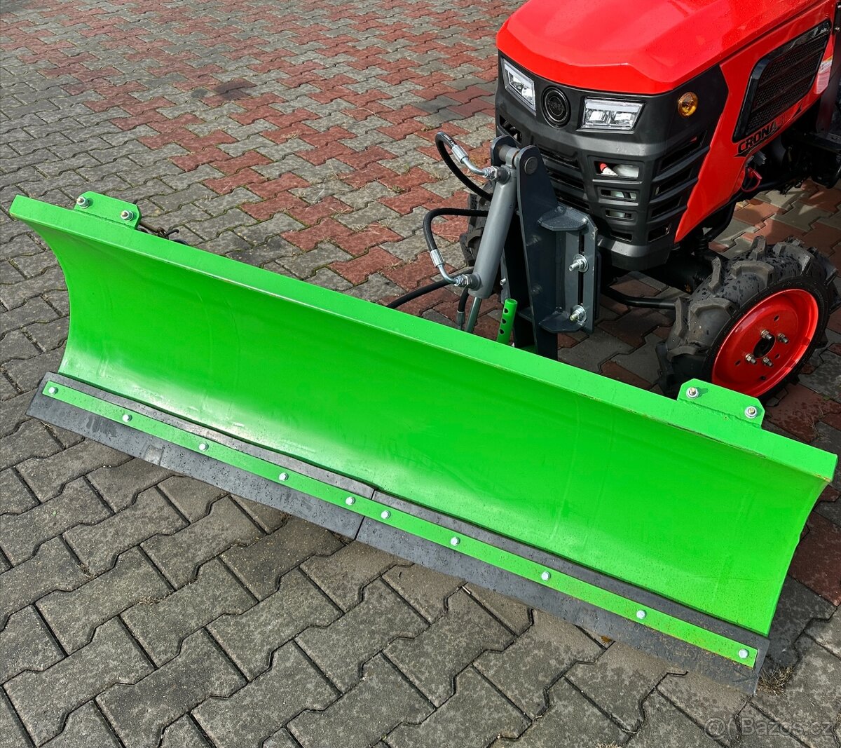 K prodeji Pluh před traktor. Pluh na sníh - rozměry lopaty: 1600 mm x 500 mm, rozměry univerzálního držáku: 300 mm x 310 mm, celková hmotnost: 85 kg, Cena bez DPH, včetně montáže. úhel natočení: 31°.