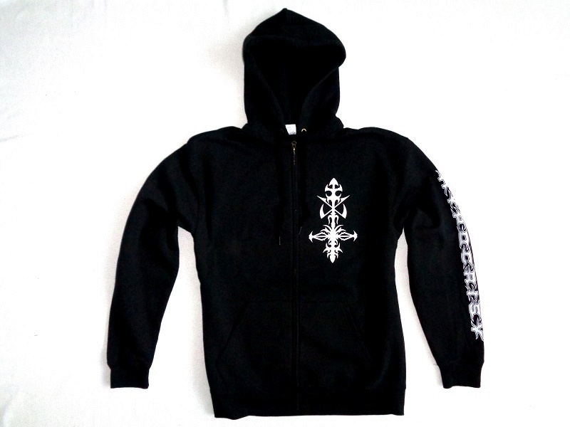 Prodám novou černou mikinu na zip s kapucí a 2 kapsami. Mikina má potisk kapely Hypocrisy, velikost L.
