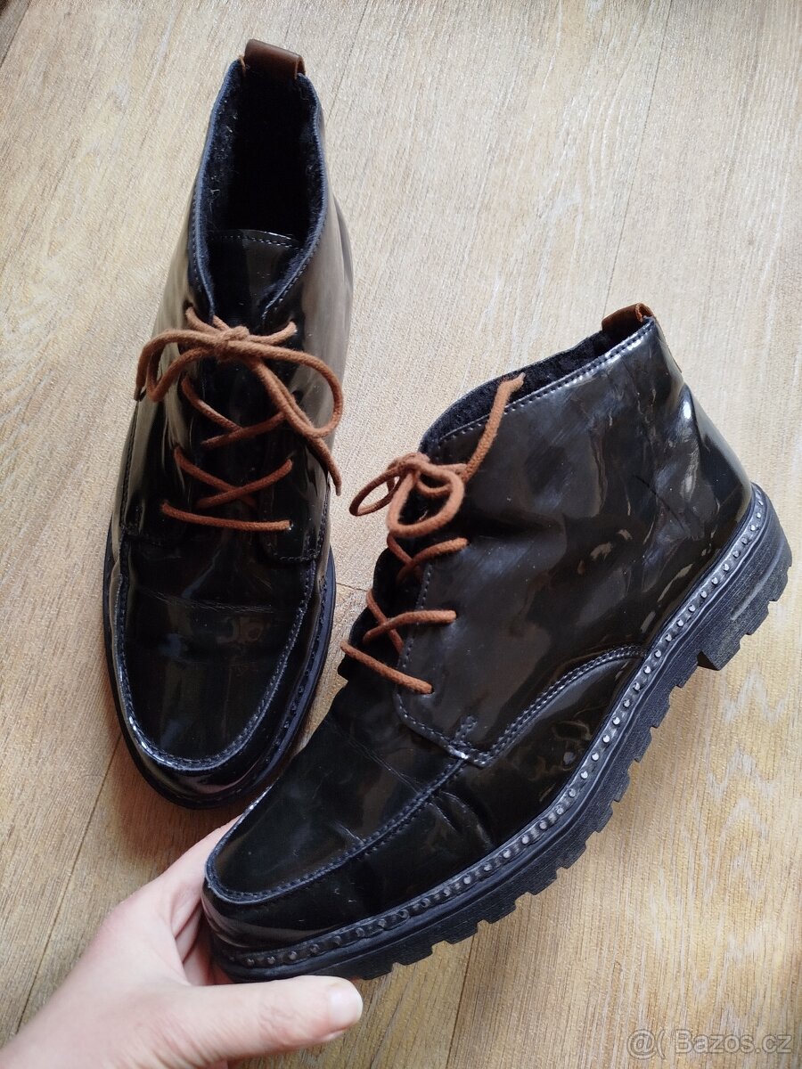 Prodám boty Rieker, velikost 40, stélka 26cm. Navrchu lesklé, uvnitř mírně zateplené. Pěkný stav, zachovalé. Cena 450,- V případě zájmu mě, prosím, pokud možno kontaktujte raději přes e-mail. Děkuji za pochopení