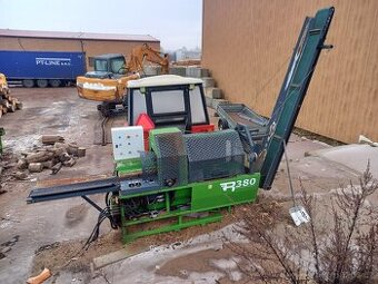 Prodám štípačku Roltrac R380 s podávacím stolem. Elektromotor o výkonu 11kW a účinné hydraulické čerpadlo. Štípací tlak 12t nebo 16t. Standardní štípačka je vybavena štípacím nožem na 4 a 6 dílů, vynášecím pásem o délce 3,0m, vstupním hydraulickým pásem 2,0m a hydraulickým nastavením výšky štípacího klínu. Cena 375.000,- Kč bez DPH.