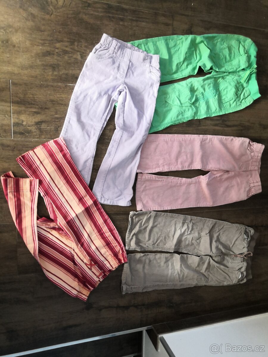 Hezké dívčí kalhoty , plátěné a manšestrové(Cherokee) vel. 116, pruhované tričtvrťáky vel 122,také nové. Tepláky na koleni trochu šedé, možná půjde vyprat, nechám zdarma. Kus 80kč,nenošené.