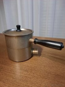 Starožitný hrnec na mléko, poniklovaný kovStarožitný, nevídaný, není hliníkový, výška 13 cm, průměr 14 cm