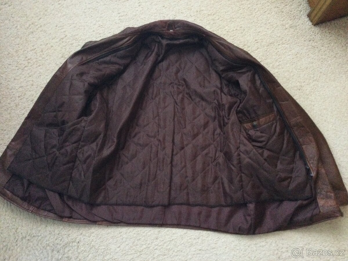 Prodám pánskou koženou bundu hnědé barvy, vel. XXL. Šířka přes prsa 65cm x 2, délka bundy 76cm, délka rukávu od ramene 64cm. Bunda má běžné známky opotřebení.