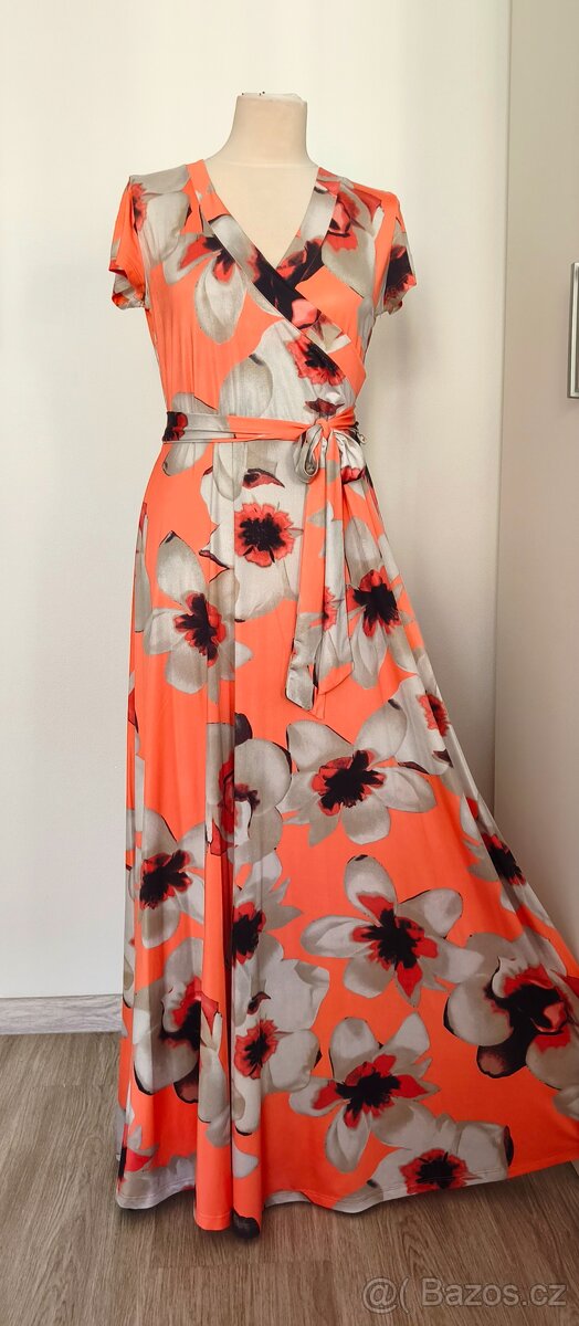 Dlouhé květované šaty zn. Bonprix, vel. 40/42 - odpovídá, látka pruží. Pásek v barvě šatů součástí prodeje.