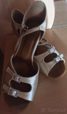 PRODÁM DÍVČÍ TANEČNÍ BOTKY BARVA ZLATÁ SVĚTLÁ. DÉLKA STÉLKY 24 CM ŠÍŘKA NÁRTU 8 CM VÝŠKA PODPATKU 4,5 CM. Použité cca 2x. s možností úpravy šířky pomocí dvou ozdobných sponek. Osobní odběr OSTRAVA,OPAVA BRUNTÁL PRAHA A OKOLÍ. Jinak poštovné hradí kupující nebo zásilkovna 79 Kč. pošlete kód a já obratem zašlu balíček.