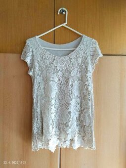 Nabízím béžovou halenku s krátkým rukávem. Pod krajkovou vrstvou je podšívka. Top stav. Balíkovna 80,- Zásilkovna 90,-