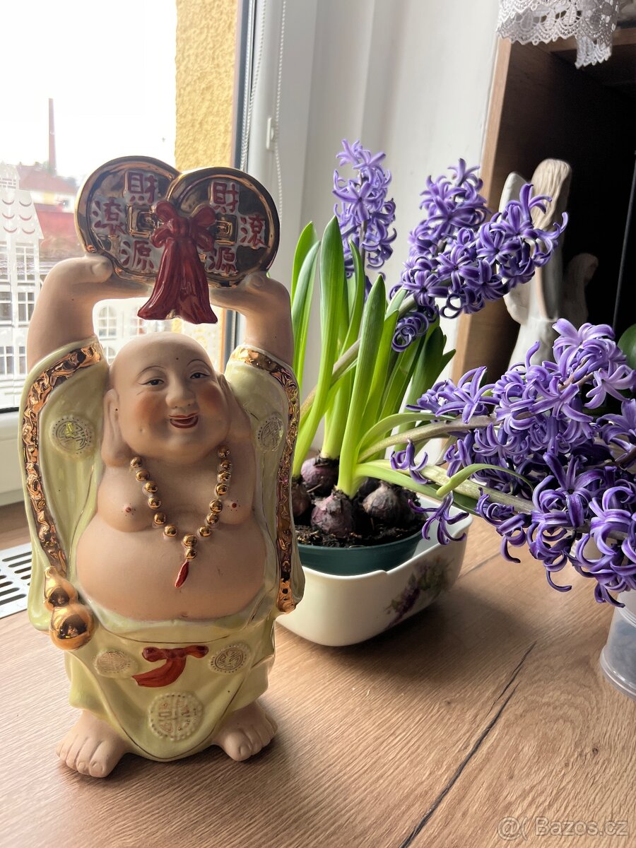 Prodám větší asijskou sošku mnicha - Čína, polovina 20. století, porcelán, ručně malované, neznačená, nepoškozená.
