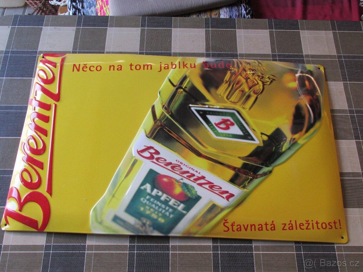 Prodám dvě velké plechové cedule Berentzen Apfel, prolisovaná, rozměry 65x 40 cm. Black Widow Fernet, prolisovaná, rozměr 60x 40 cm. Cena 490 Kč za jednu, nebo výměna za jinou, nabídněte. Osobní předání Kladno, možnost i zaslat + poštovné. Podívejte se na moje další inzeráty.