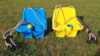 Prodám dětskou houpačku ve žluté barvě, viz foto. Rozměry: 31 × 36 × 36 cm (V׊×D). Na žluté houpačce nahoře chybí pískátko, ale na funkčnost to vliv nemá. Vhodné pro děti od 18 měsíců do 3 let. Maximální nosnost: 19 kg. Určeno pro použití venku. VELMI DOBRÝ STAV. Cena 100 Kč/ks.