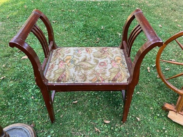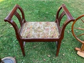 Dřevěná židle s polstrovaným sedákem. Celková šíře - 70 cm, výška - 72 cm, šíře sedáku - 39,5 cm, výška sedáku - 44 cm.