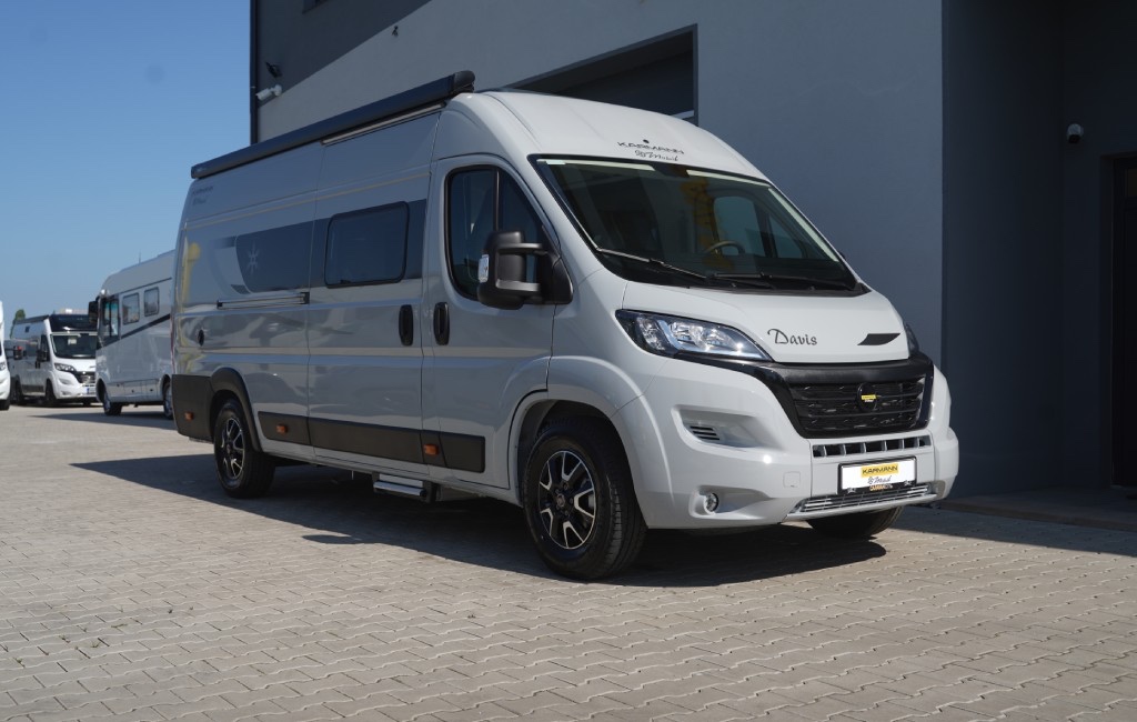 Jsme výhradní dovozci prémiových značek obytných automobilů Karmann-Mobil, Affinity, Tourne a Robeta Mobil pro ČR. Podvozek: Fiat Ducato Manuální převodovka Základní vybavení vozidla Airbag řidiče a spolujezdce ABS / ESP Manuální klimatizace Tempomat Přední otočné sedačky vč. loketních opěrek Isofix Posilovač řízení Imobilizér Elektrické ovládání oken vpředu Elektricky nastavitelná vyhřívaná vnější zpětná zrcátka Centrálního zamykání na dálkové ovládání Opravná sada pneu Fix & Go Potah sedadla řidiče a spolujezdce Přední nárazník lakovaný v barvě vozu Zadní nárazník černý Izolace bočních stěn a stropu Rámová okna Nástavbová okna vč. vzpěr Vnější osvětlení Elektrický schůdek Střešní okno 400 x 400 mm, se stmívající roletou a moskytiérou Kuchyň Lednice 80 l Dvouplotýnkový vařič vč. skleněného krytu Centrální vypínač plynu Kuchyňská deska s integrovaným dřezem LED osvětlení kuchyňského bloku Koupelna Toaleta vč. integrované sprchy Koupelnové okno Kazetová toaleta Koupelnový rošt Odděle