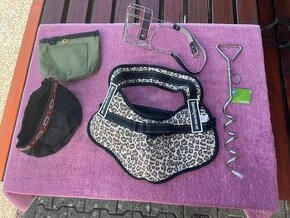Pamlskovníky-možno připnout,málo používané Košík-střední plemeno,délka 16cm,šířka 10cm,výška 13cm-málo použitý Vrták s okem-nový Kšíry XL-nastavitelný břišní popruh-málo použité
